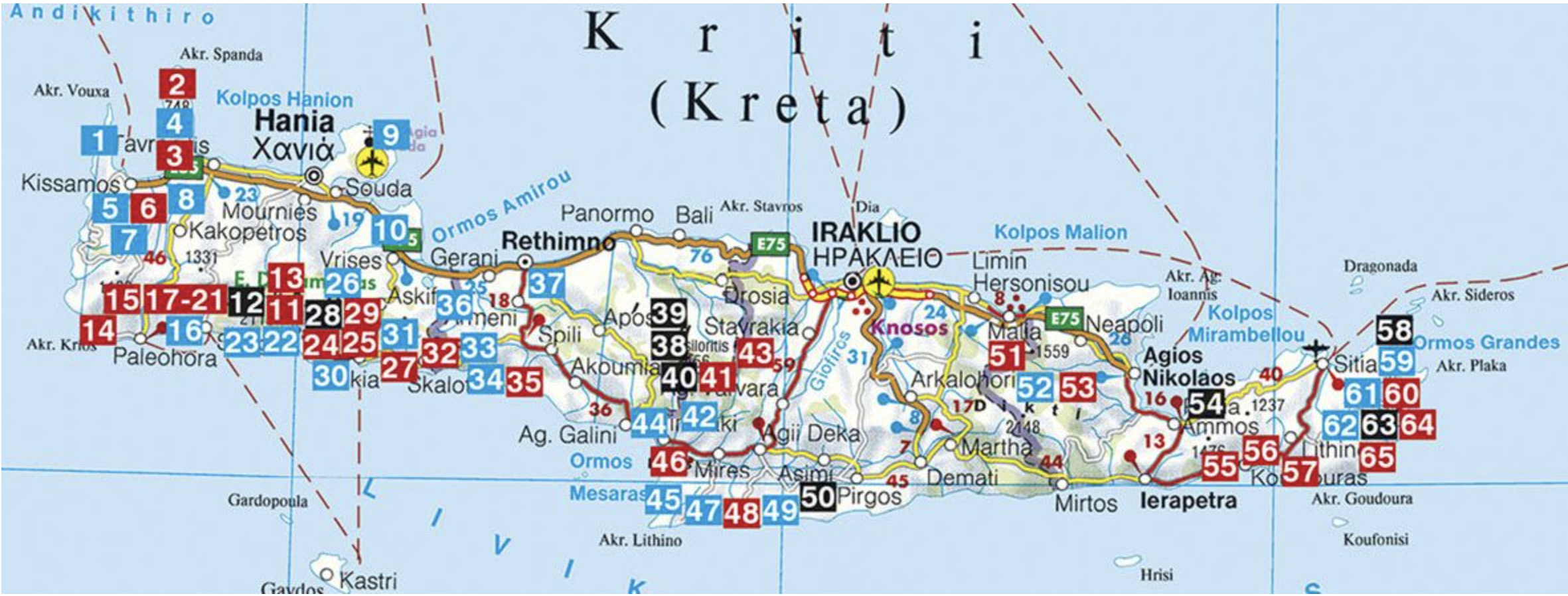 Peu importe ce que vous cherchez, vous trouverez une grande variété des meilleurs sentiers de randonnée pour répondre à vos besoins. La Crète est une région de randonnées aux multiples facettes, mais en de maints endroits, elle a su conserver un visage sauvage et vierge. Le paysage est dominé par trois imposantes chaînes montagneuses sillonnées de gorges profondes. Hautes montagnes et mer bleue cohabitent étroitement.